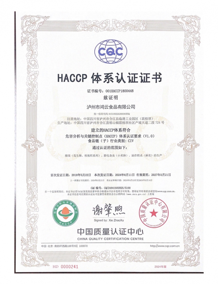HACCP體系認證證書(中文)